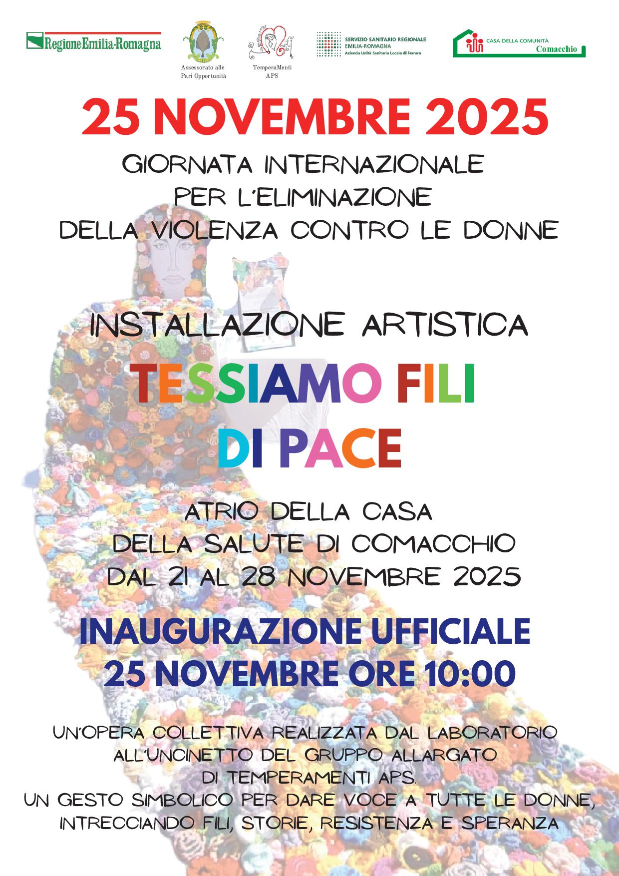 Si parte alle 10, nella Casa di Comunità (ex ospedale San Camillo), dove TemperaMenti Aps, ha deciso di unirsi allo staff del servizio sociosanitario per contrastare la violenza di genere e per l'occasione ci sarà l'allestimento dell'opera "Tessiamo fili di pace" che sarà esposta dal 21 al 28 novembre. "L'impegno per la pace è legato alla lotta contro la violenza sulle donne perché mira a far emergere una cultura che promuove il rispetto reciproco", commentano le organizzatrici dell'iniziativa.